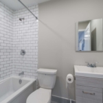 - Apartment is 1230 square feet and has 4 bedrooms, 2 full bathrooms with double sinks and common spaces shared by all.